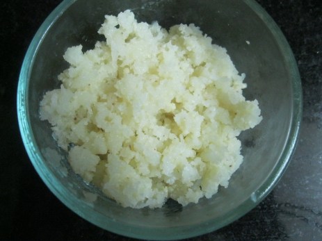 1) Fresh Coconut gratings: 1 cup (You can use frozen fresh coconut shreddings like that packaged by Goya)