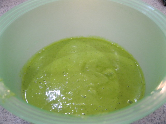 - Grind till smooth. Add more water if the mixture is getting stuck and not grinding easily. Caution – add water a little at a time. The consistency of the batter should be like pancake batter. The batter shown below is green in color because I ground cilantro with the rice and bean mixture. However, adding cilantro is entirely optional. Grind the rest of the mixture and store the batter in a container that is large enough so that there is atleast 2 inches of empty space on top.