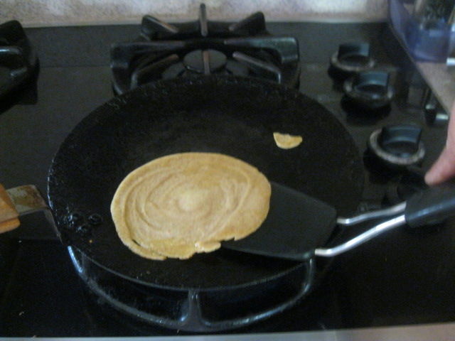 - With a flat spoon like the one shown below, gently pry the edges of the crepe free of the griddle and flip it over gently like you would a pancake, crepe or omlette.