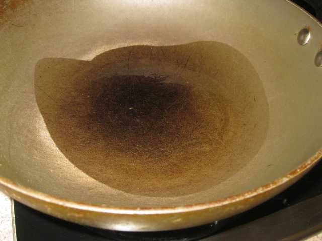 - When the oil heats up (there will be a slight haze above the oil and you can smell the oil) add the garlic and stir it till it is light golden brown.