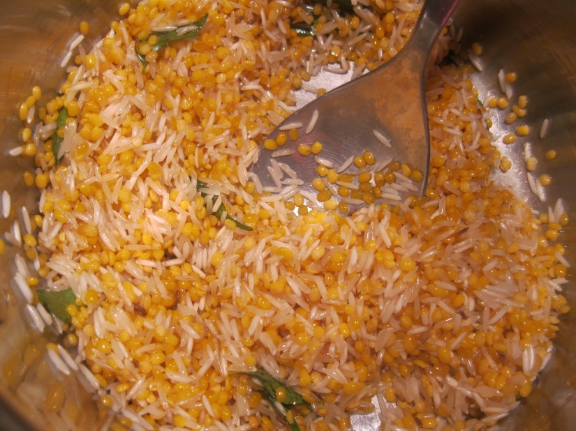 Since, I just could not come up with a name for the dish in English that would reflect the true nature of the dish – I threw it out as a question to my Facebook friends. So, this post is an ode to all the fun names they came up with…Niv, a most creative food blogger of Panfusine came up with ‘Kedgeree’, the British dish that traces its roots back to the India Khichri and uses fish and rice. Mohita, my high school pal, names it ‘Rictle’ – Rice + Lentil, dear Indu called it the ‘Rice Porridge’, my cherished undergrad friend Helen wondered if ‘Rice Polenta’ should be the way to go and Kamy coined a real cool name – the ‘Indypot’ or Indian hot pot 🙂 Finally, decided to stick with the original name as suggested by the guys. They made school a barrel of fun but stuck to tradition when it came to dish-naming – Navin, a grad school pal and Vivek, an undergrad friend 🙂 Thanks all – given the various names, even a first-time taster can hazard a guess as to what the dish is going to taste like…