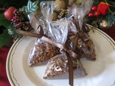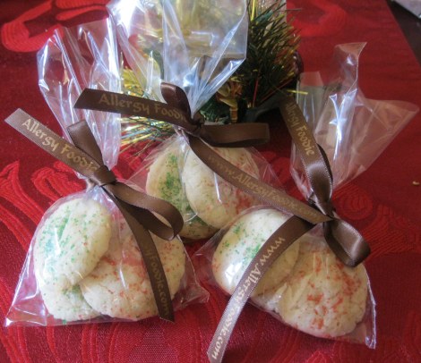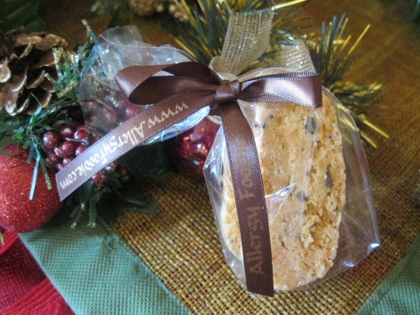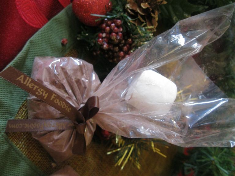 I love the idea of an allergen free gift basket! How wonderful! The ribbon with ‘Allergie Foodie’ is awesome…where did you get that done? I am so thankful to have found your site…I am inspired to try new foods and flavours …I have presented you with an award on my site. Congradulations! Susan H. @ The Food Allergy Chronicles
