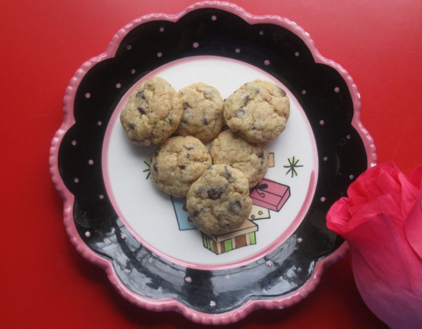 The smell of freshly baked allergy-friendly Cherrybrook Chocolate Chip cookies wafts in from the kitchen as my little one and I put together food-free valentines for his friends – the pink flower stickers for the pretty little girls and the football stickers for the handsome little boys…perfect 🙂