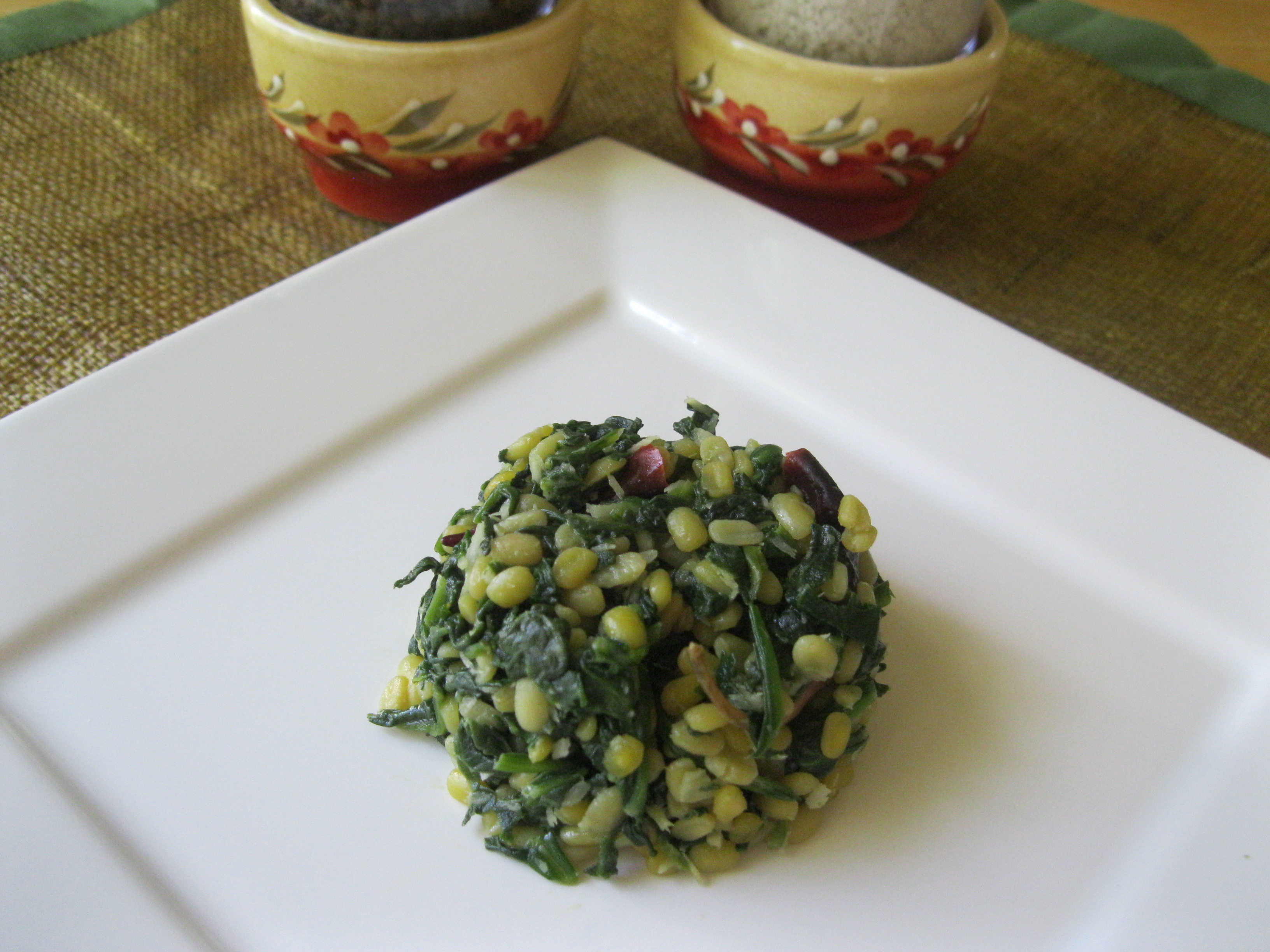 This dish is dedicated to her because she has embraced a healthy lifestyle with so much passion that I am sure she will love this simple but elegant dish. It also features one of my and my son’s favorite vegetables – spinach. It is packed with fiber, iron and proteins and the mild spices will make your tummy do a happy jig. Presenting…‘Allergy Friendly Sautéed Spinach with Mung Beans’
